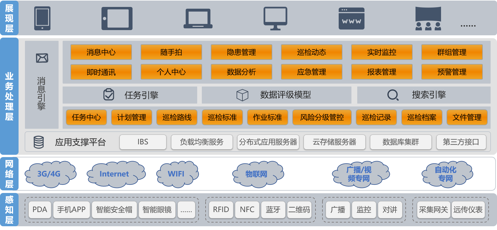 金岳慧创云巡检系统是一套专门针对日常巡视检查工作的管理系统,基于互联网技术,通过移动端和云应用端的配合,以及多样化具有定位、感知、预警和音视频通讯功能的一体化智能穿戴产品,解决巡检现场作业过程中的问题,实现巡检数据采集的网络化和存储的安全化,真正实现智能化巡检管理。