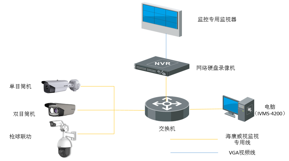 热成像周界防范系统组成简单,主要由前端热成像摄像机、传输网络、中心管理组成。关于传输网络和中心管理的设计,根据需要选择不同的传输网络,在中心部署不同的产品。